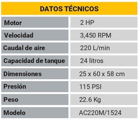 COMPRESOR PORTATIL DIRECTO 24L PTK compresoras