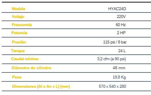 Compresora HYAC24D 2HP 24 litros Hyundai Compresoras