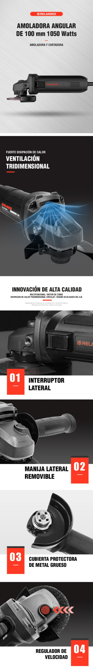 Esmeril angular 1050W 4.5 RR-81051C Relanded Amoladoras