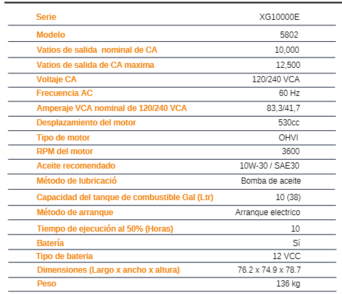 GENERADOR PORTÁTIL 10KW ARRANQUE ELÉCTRICO A GASOLINA XG10000E GENERAC