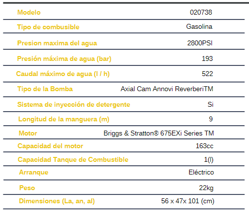Hidrolavadora a gasolina 193 BAR Briggs & Stratton Hidrolavadoras