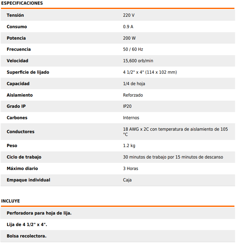 Lijadora orbital 1/4" 200W 15731 Truper Lijadoras