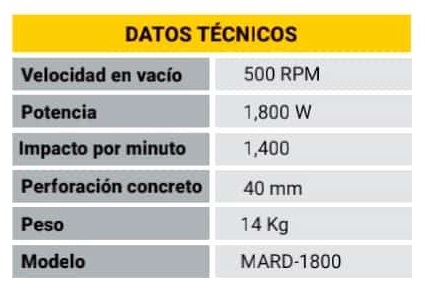 Martillo demoledor 1800W c/maletin PTK Herramientas