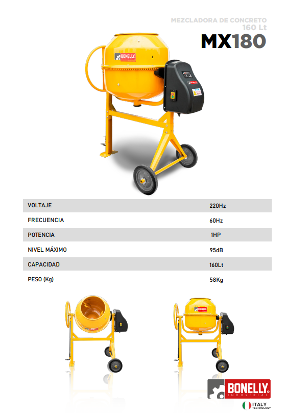 Mezcladora De Concreto 160lt 1hp Bonelly Mezcladoras