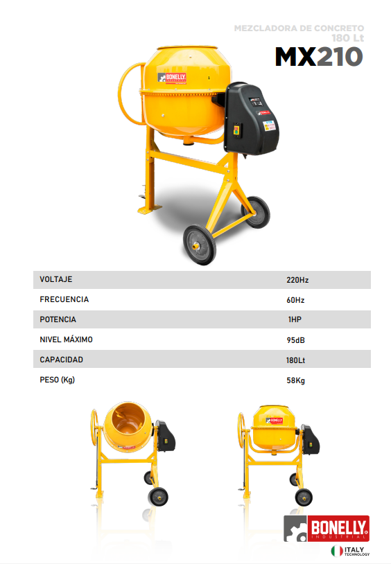 Mezcladora De Concreto 180lt 1hp Bonelly Mezcladoras