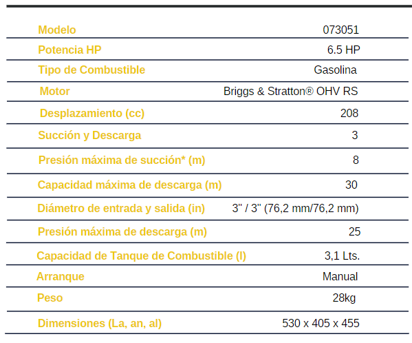 Motobomba a gasolina 6.5HP 3" 073051 Briggs & Stratton Motobomba