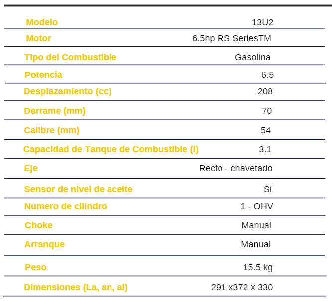 Motor 6.5hp RS Serie, Sólido rendimiento, diseñado para aplicaciones con uso ocasional.