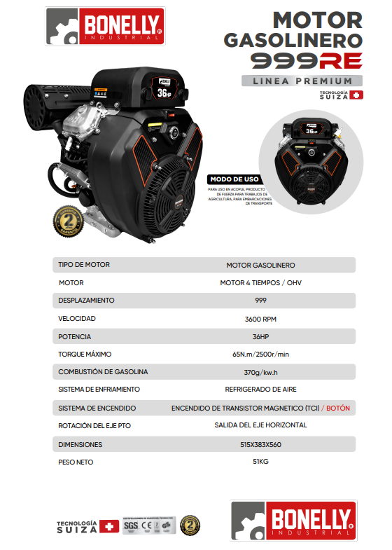 Motor Gasolinero 36HP/Botón - Línea Premium Bonelly Motores
