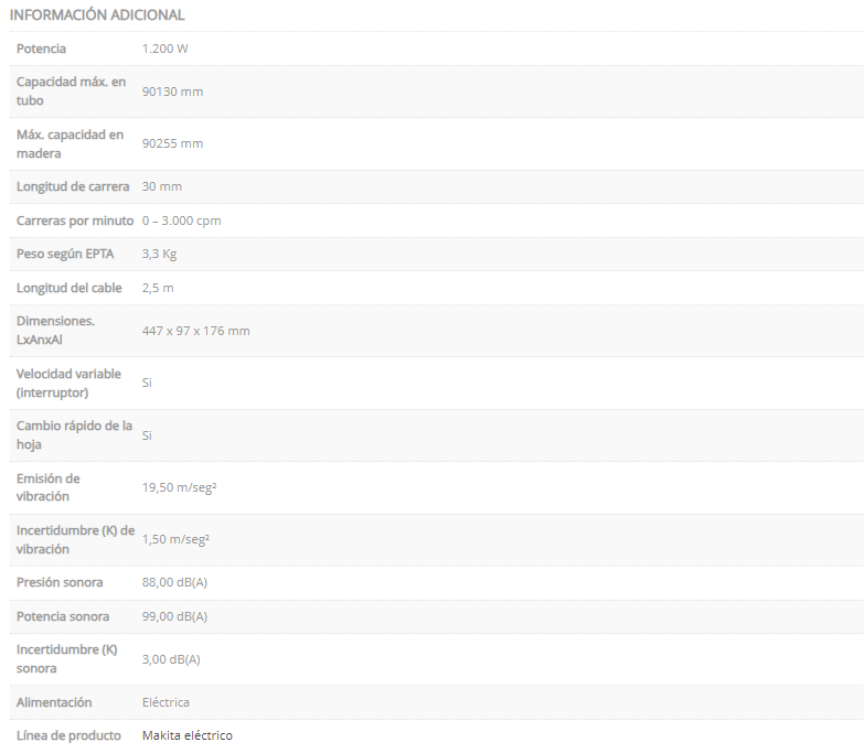 - Sierra de sable de 1.200W, mejora el rendimiento de su predecesora JR3050T.