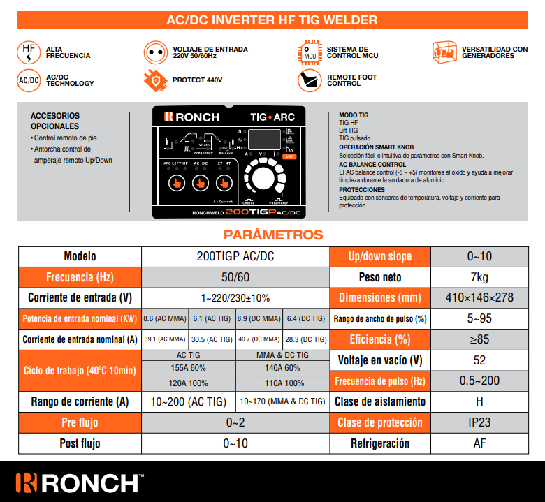 Soldadora inversora 200 TIG AC/DC Ronch Soldadoras