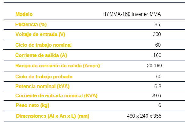 - La HYMMA-160 Es una soldadora MMA monofásica, portátil e increíblemente versátil de Hyundai.