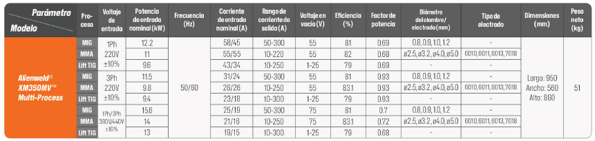 SOLDADORA XM350MV MULTI-PROCESO ALIENWELD SOLDADORAS