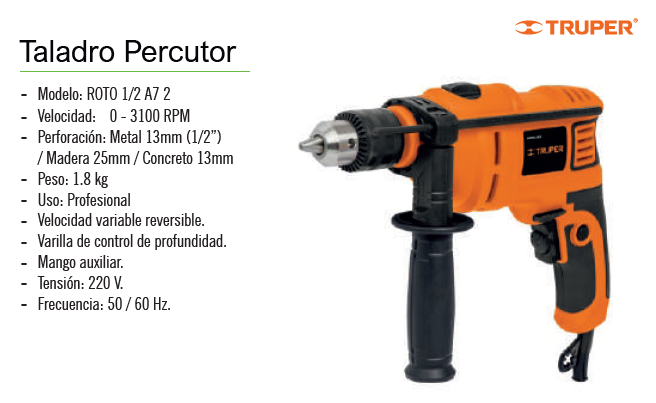 Taladro percutor electrico 550W 15346 Truper Taladros
