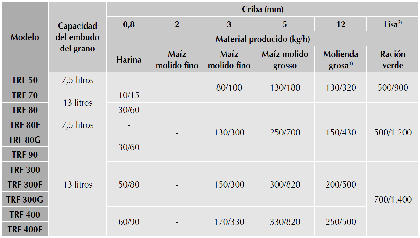 Para forraje verde, mantener la criba lisa (sin perforación) y utilizar la